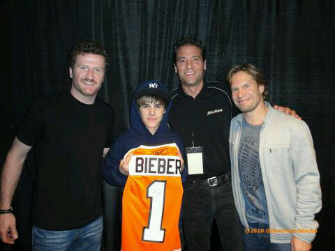 That is Justin Bieber. He's annoying, Canadian, a Yankee fan, and a pedophile’s dream. He’s also been given an honorary personalized jersey by the Flyers. That’s all well and good, but come on - #1 is Bernie Parent's number. How they gonna slap BIEBER over one of the greatest goalies of all time? No respect I tell ya. No respect.